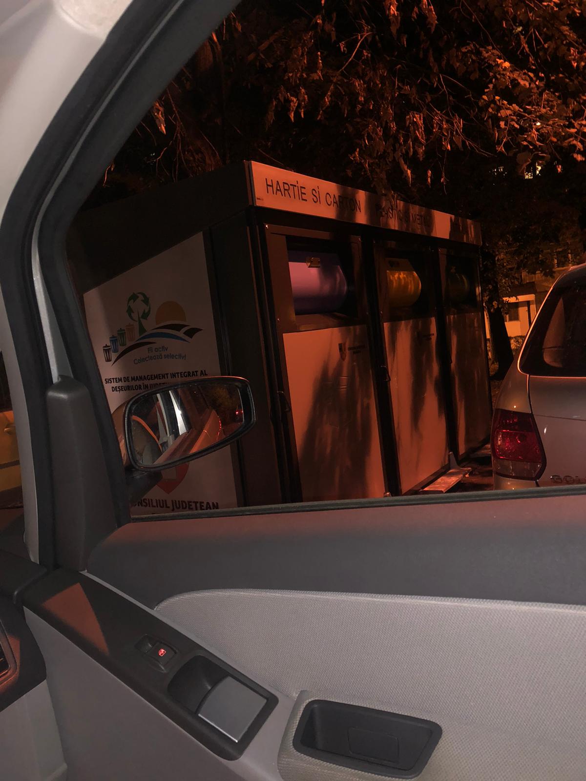 Aam plecat cu masina spre serviciul meu, în alta localitate, iar la intoarcere mi-am gasit locul ocupat de pubele pentru colectare selectiva gestionate de Consiliul Judetean.