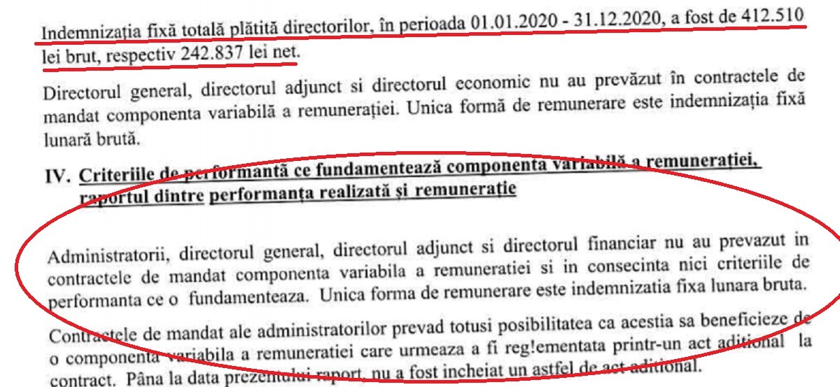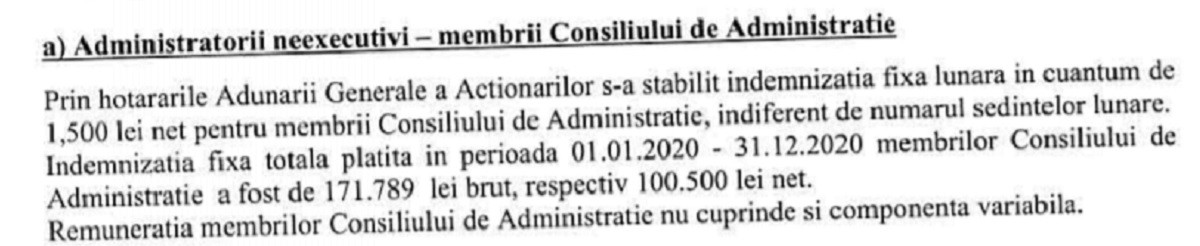Pentru o imagine de ansamblu, trebuie precizat că anul trecut valoarea salariilor directorilor și membrilor CA a fost de 584.299 lei brut.