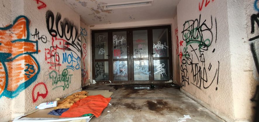 Scările de la intrările laterale au fost transformate în dormitoare și totodată în adevărate toalete publice, iar grilajul sudat de angajații SGU la sfârșitul lunii ianuarie a anului trecut a fost deja rupt.