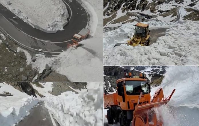 Compania Națională de Administrare a Infrastructurii Rutiere (CNAIR) a publicat, joi, noi imagini spectaculoase surprinse cu deszăpezirea pe Transfăgărășan. Stratul de zăpadă depășește 5 metri. CNAIR estimează că traficul rutier va fi deschis înainte de data de 1 iulie.