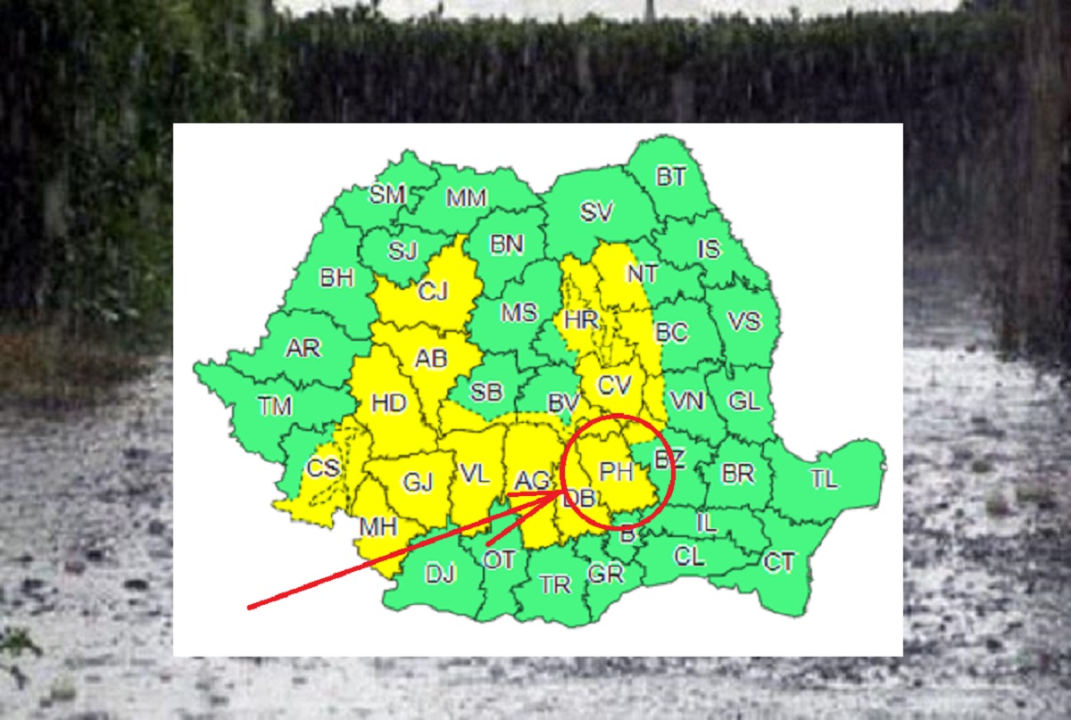 Administrația Națională de Meteorologie (ANM) a emis, luni, 13 iunie, o nouă atenționare meteo de cod galben de ploi torențiale și vijelii, avertizare valabilă în mai multe județe, inclusiv în Prahova.