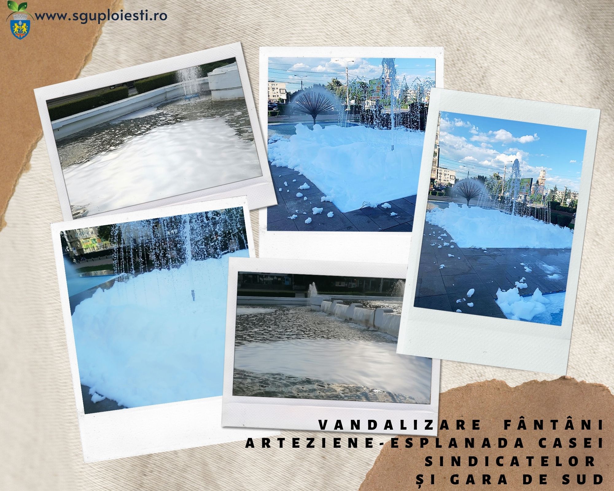 Servicii Gospodărire Urbană Ploiești a prezentat mai multe imagini cu fântânile arteziene vandalizate și susține că totul a fost posibil după ce în apă ar fi fost deversate substanțe care au produs spuma.