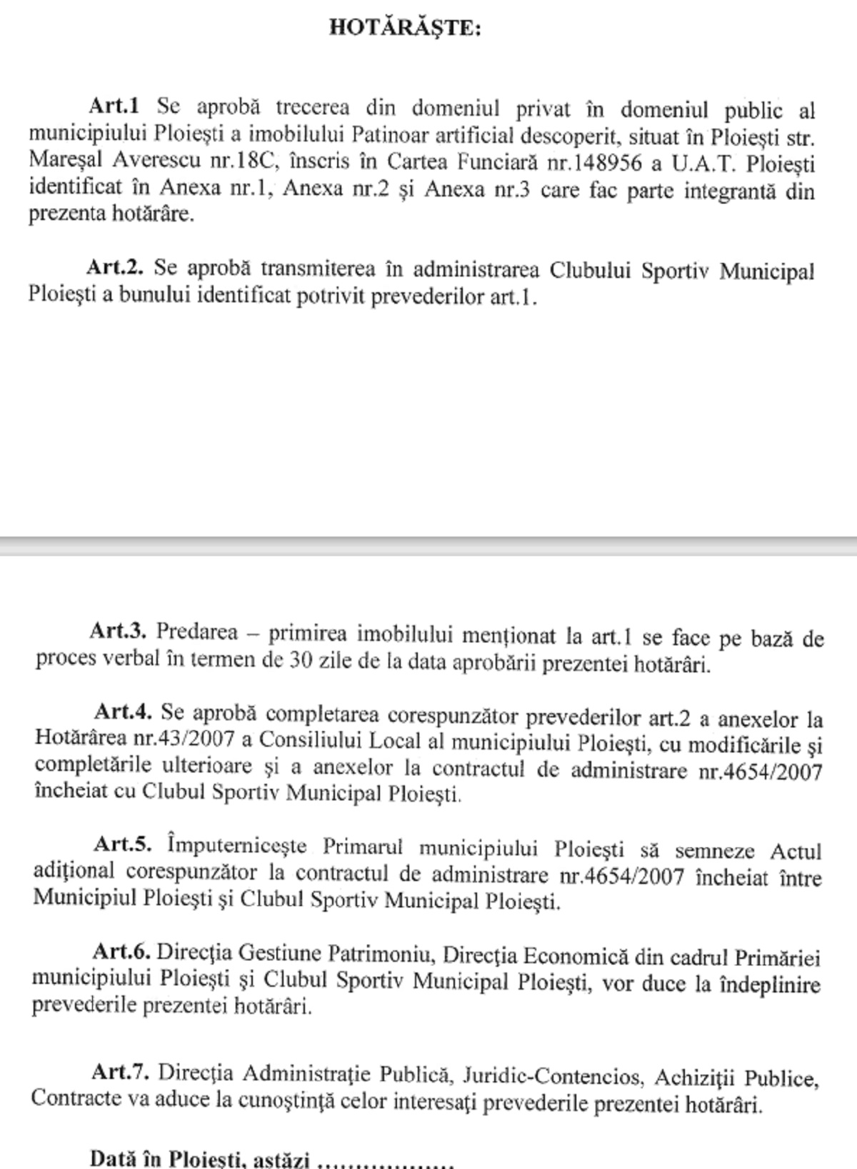 Citește și: Primăria Ploiești a preluat patinoarul de la Sala Sporturilor