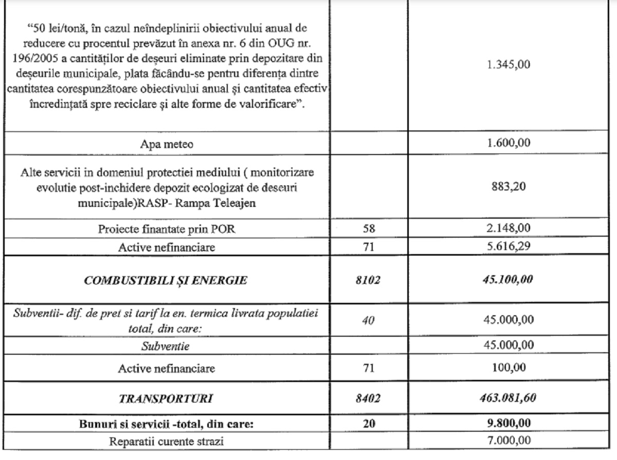 Pentru subvenție, respectiv pentru diferența de preț și tarif la energia termică livrată populației suma propusă este de 45.000 mii de lei, sumele prezentate fiind cu mult mai mici față de anul trecut. Există însă posibilitatea de rectificare în decursul anului.