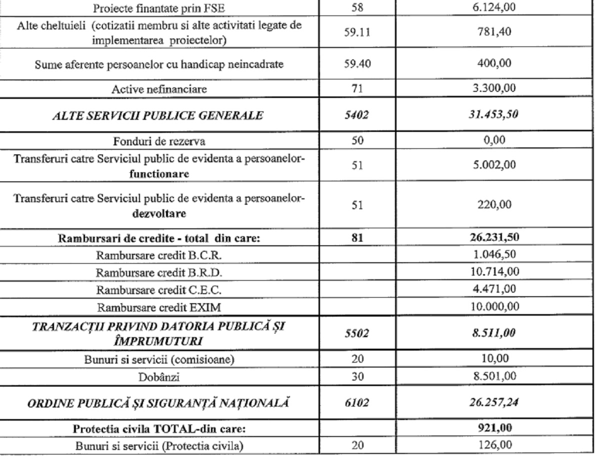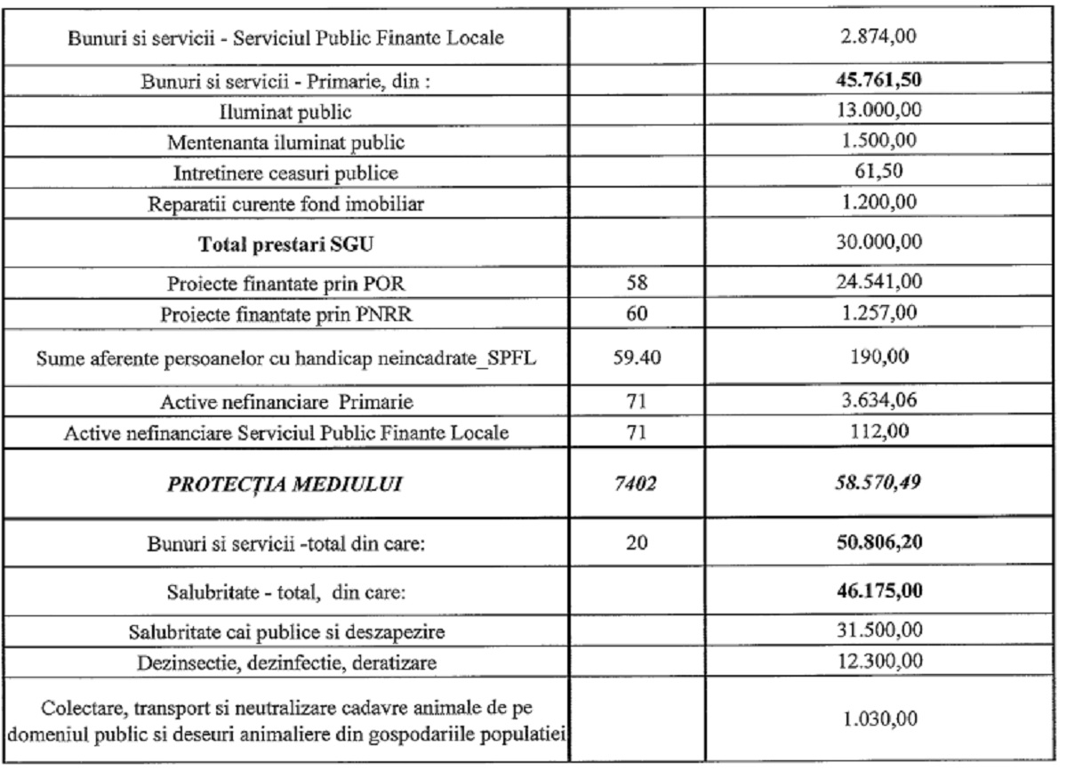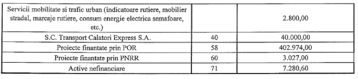 Pentru SC Transport Călători Express suma propusă este de 40.000 mii de lei, iar pentru iluminatul public suma propusă este de 13.000 mii de lei.