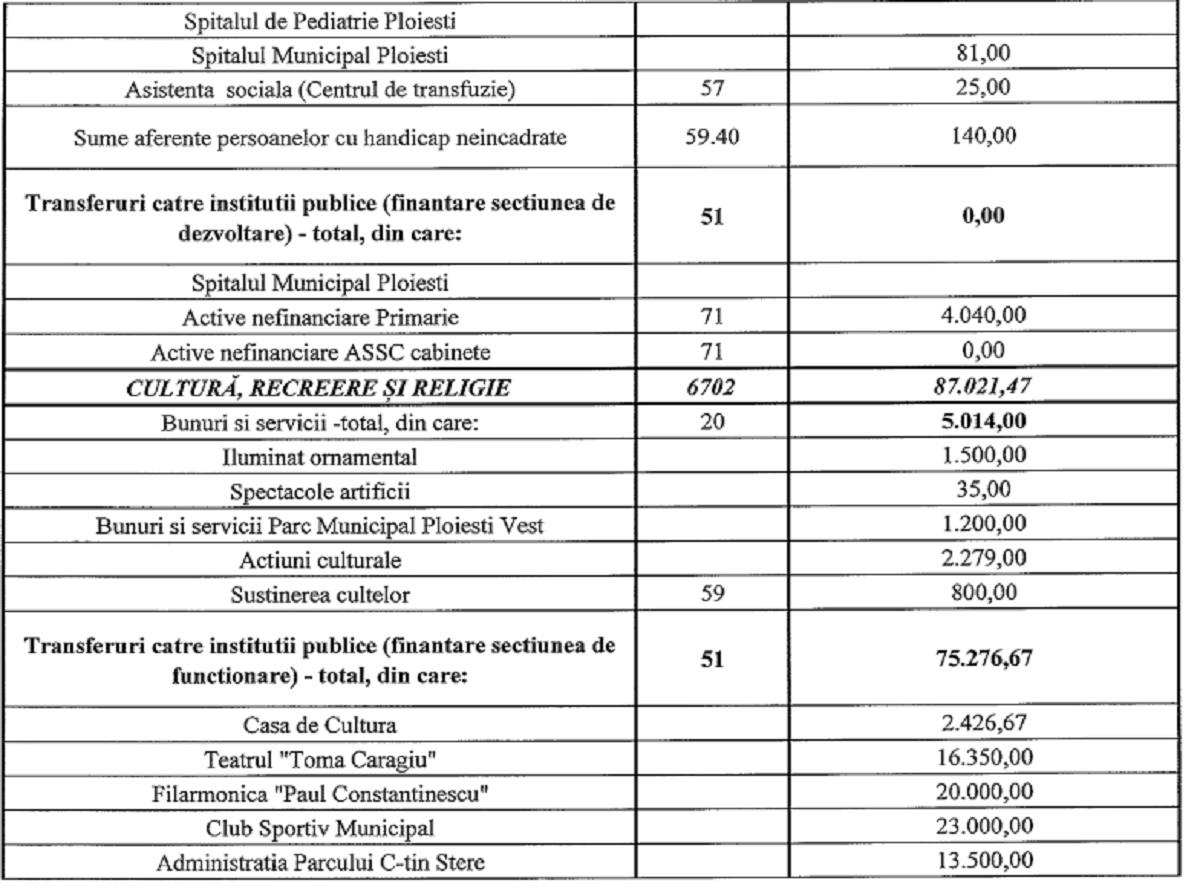 Propunerea de buget afișată pe site-ul Primăriei Ploiești
