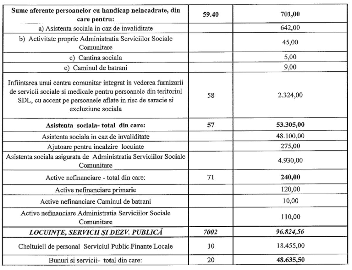 În proiectul de buget se propune alocarea de 7.000 mii de lei pentru reparații străzi, în timp ce pentru acțiunile culturale suma propusă este de 2.279 mii lei, fiind menținută suma pentru spectacolul de artificii (35 mii de lei), pentru iluminatul public ornamental fiind propusă suma de 1.500 mii lei.