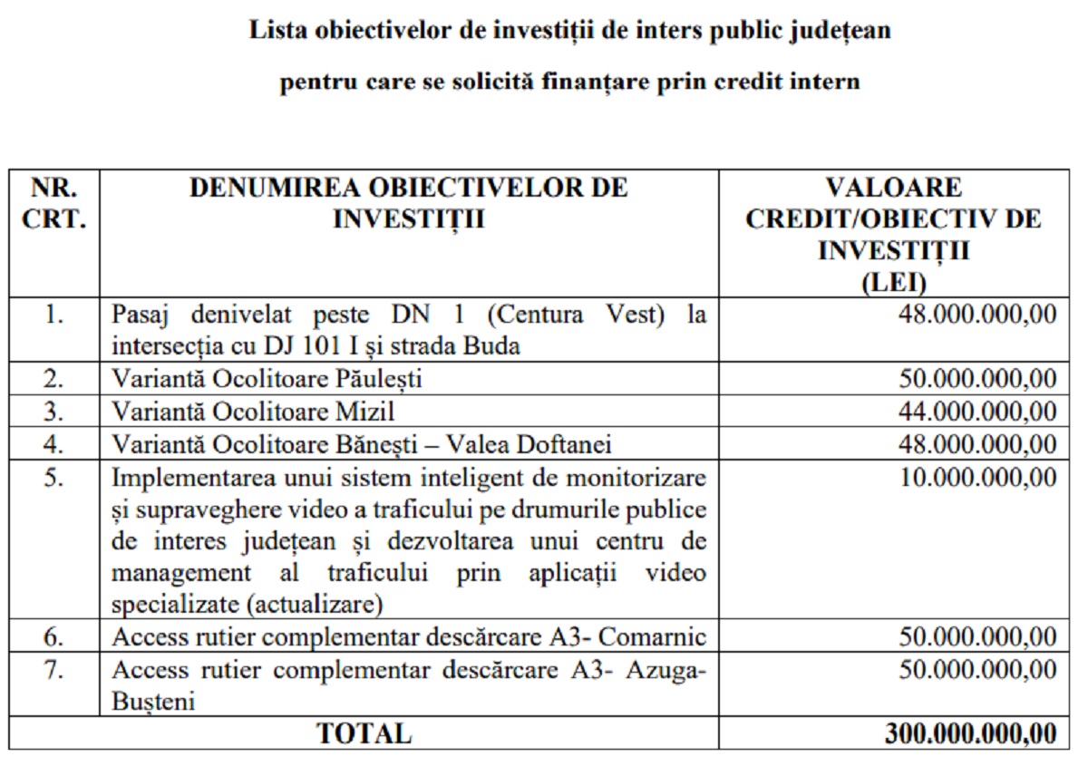 Citește și: Credit de 300 de milioane de lei pentru proiecte majore de investiții la Consiliul Județean Prahova. Proiect