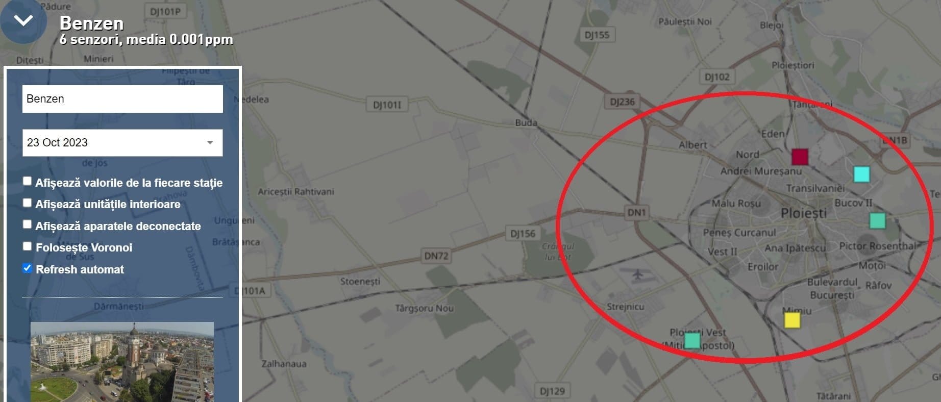 Luni dimineață, conform datelor publicate pe site-ul Primăriei Ploiești, la Microstația 2, amplasată la Liceul de Transporturi, aerul era „foarte rău”, la indicatorul benzen.