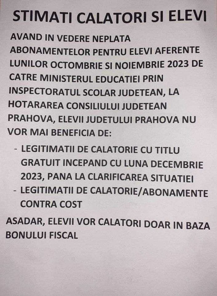Așa cum am anunțaț, în exclusivitate AICI, începând din luna decembrie, transportatorii din Prahova nu mai pot suporta din surse proprii contravaloarea abonamentelor.