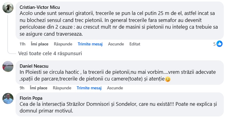 Traficul intens și lipsa de vizibilitate fac ca unele treceri de pietoni să fie considerate de ploieșteni ca fiind periculoase. Este vorba în principal de trecerile de pietoni de pe arterele intens circulate din municipiu, cu mai multe benzi. Vorbim, totodată, de zone unde unii conducători auto nu au niciun fel de instinct de a frâna, în ciuda semnalizărilor de atenționare.