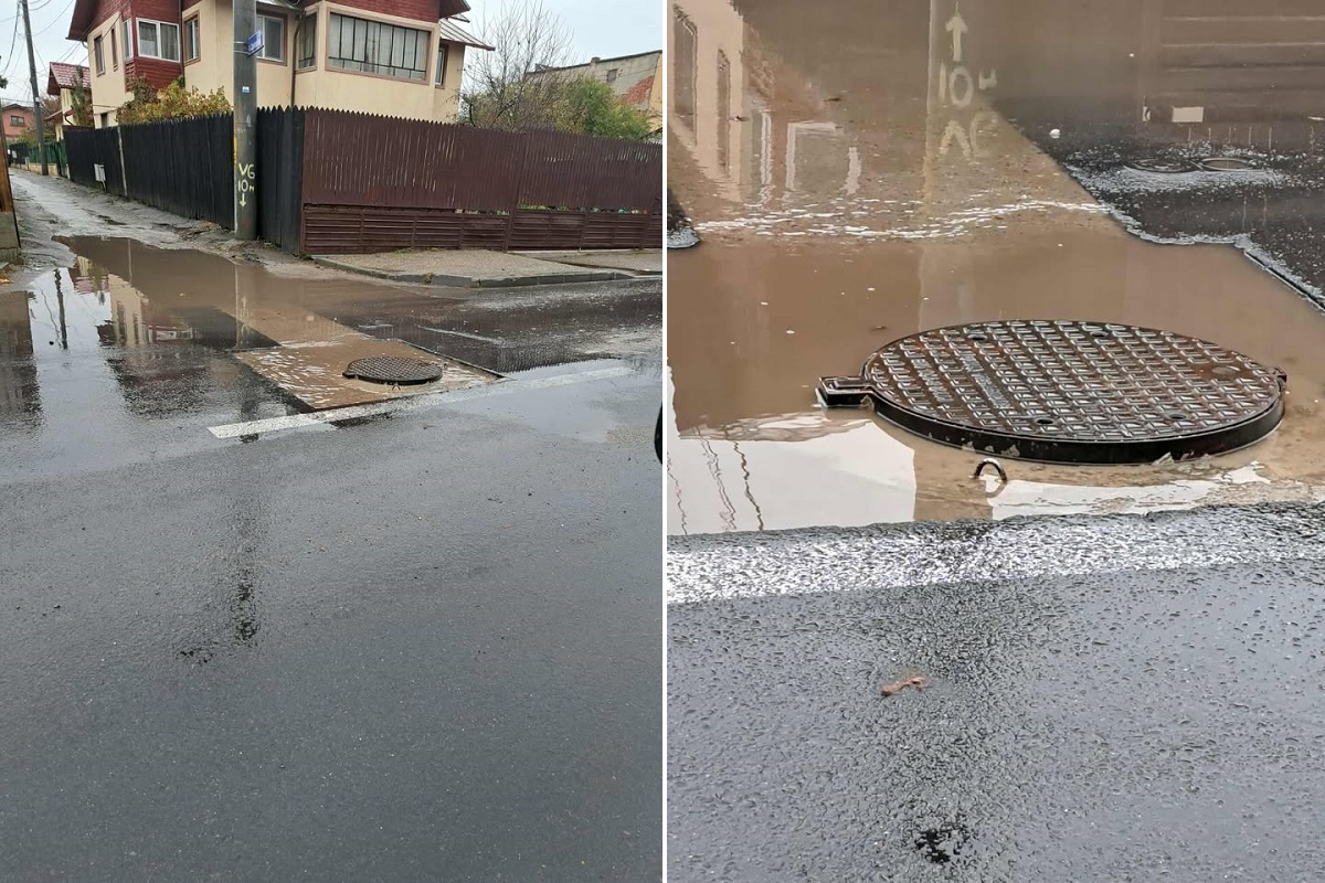 „Revenim cu strada Pielari! Proaspăt asfaltată, (nu integral și cumva în bătaie de joc!) începe să revină la starea inițială. Cum să faci o astfel de lucrare, să o lași nesemnalizată într-o perioadă ploioasă, fără să pese cuiva că îți poți distruge mașina!!! Ce minți luminate aprobă așa ceva??”, se întreabă un cititor.