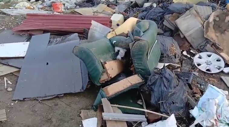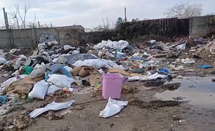 Terenul viran situat între străzile Bădești și Trandafirilor este împânzit cu tot felul de deșeuri, de la canapele și mobilier vechi, până la saci de moluz, cartoane și chiar haine vechi.