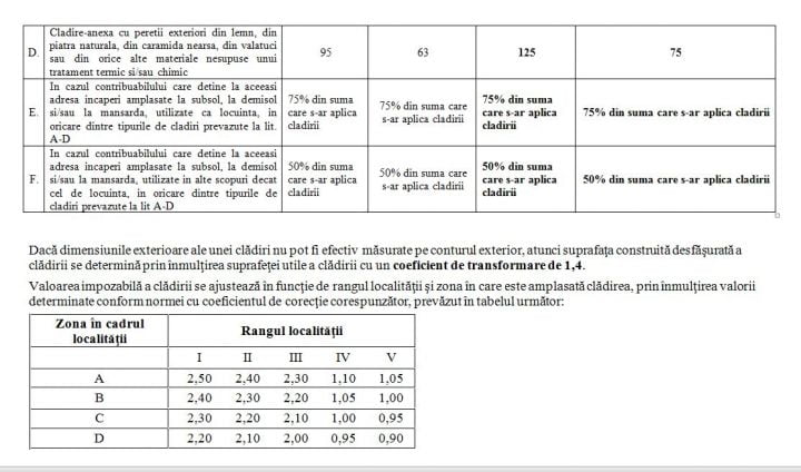 Mai în detaliu, pentru o casă de 100 mp un cetăţean plătea în 2015 intre 55 lei si 92,5 lei, în funcție de utilitățile la care erau racordați. Pentru anul 2016 același cetățean va plăti intre 60 si 100 lei.