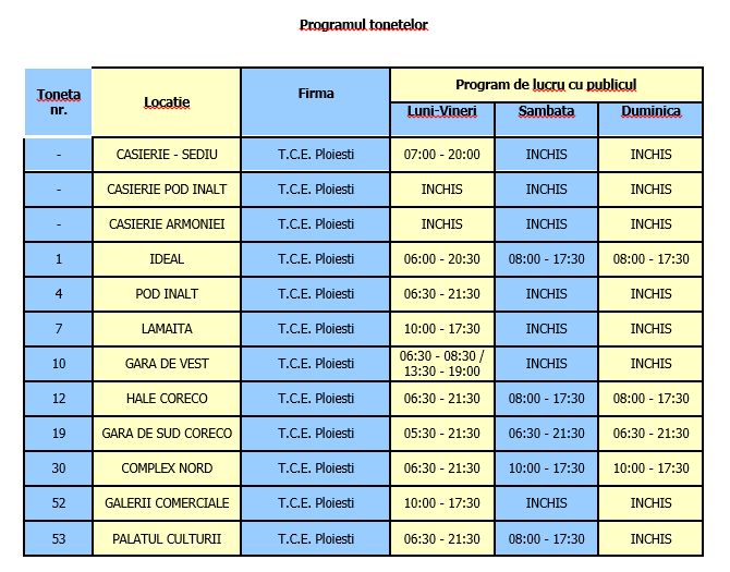 Vezi mai jos programul de funcționare a tonetelor din Ploiești