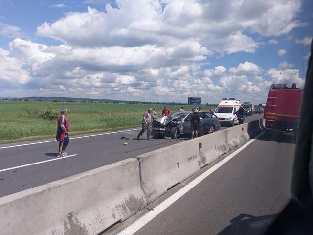 Potrivit primelor informații, unul dintre cele patru autoturisme implicate în accident s-a răsturnat pe un câmp. Se pare că accidentul s-ar fi produs după ce autoturismele au intrat în coliziune față – spate.