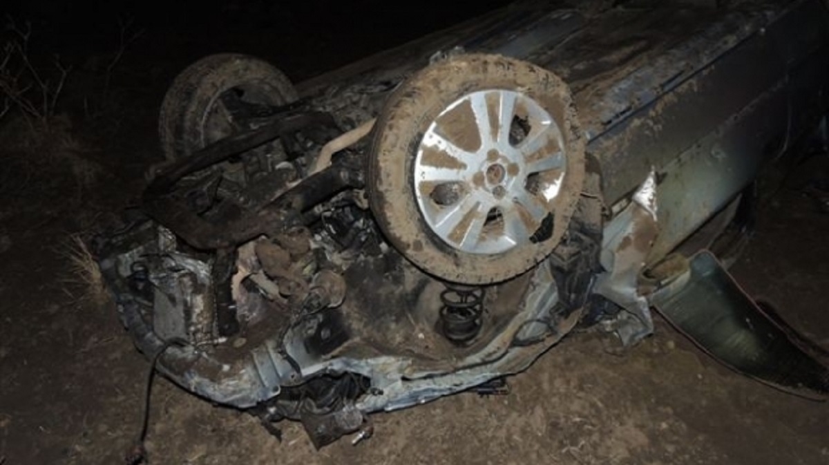 Mașina a rupt un parapet de pe marginea drumului și a ieșit în afara părții carosabile, răsturnându-se într-o râpă.