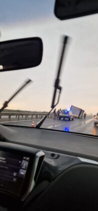 Circulația rutieră se desfășoară pe banda de urgență și prima bandă și se estimează reluarea normală a traficului după ora 18:00