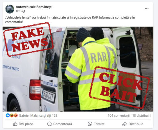 Registrul Auto Român atrage atenția asupra unor campanii de dezinformare, clickbait și fake-news derulate pe rețelele de socializare.