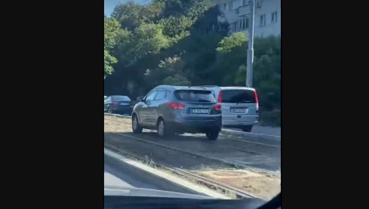 Șoferul unei mașini cu numere de înmatriculare de București a devenit vedetă pe o rețea de socializare, după ce a fost filmat de un alt participant la trafic în timp ce circula pe linia de tramvai.