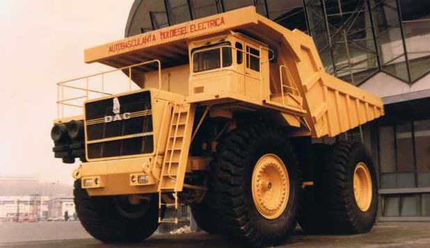 Ceauşescu a vrut ca inginerii români să-i facă un „camion-gigant” care să poată duce în benă o încărcătură de 120 tone la un singur transport. După zece ani de proiectare, în ’88 era omologat monstrul „DAC 120 DE” cu diametrul roţilor de 3,2 metri, lat cât şoseaua, ce cântărea 90 tone cu bena goală şi a cărui înălţime de 5,4 metri ajungea până la demarcaţia dintre etajele unu şi doi ale unui bloc.