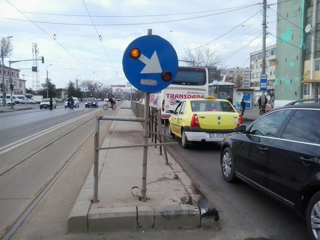 Nerespectarea indicatorului ”ocolire” instalat pe refugiul stațiilor de tramvai constituie contravenție conform prevederilor art. 108 alin. 1 litera b din OUG 195/2002 privind circulația pe drumurile publice.