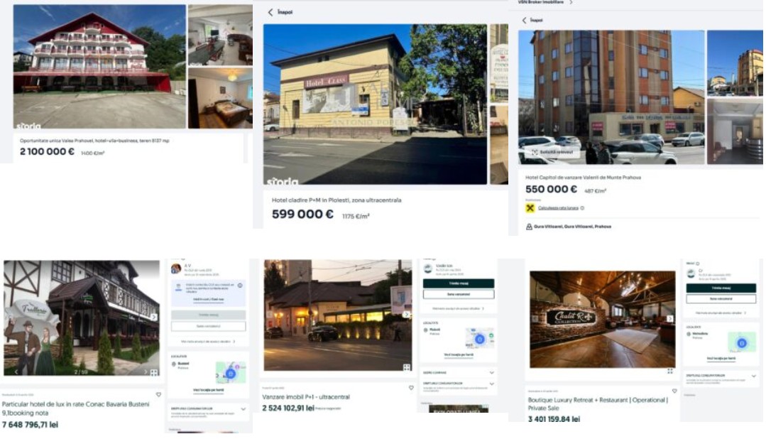 Pe platformele online de tranzacții imobiliare se regăsesc anunțuri de vânzare ale unor pensiuni și hoteluri atât din Ploiești, cât și din alte zone din Prahova, inclusiv de pe Valea Prahovei.