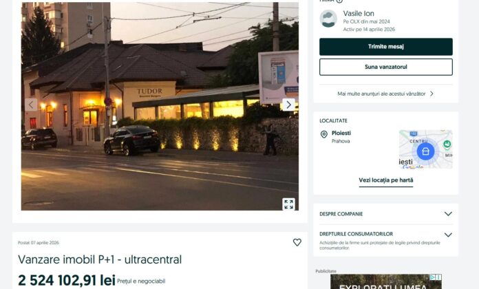 O clădire din zona centrală a Ploieștiului, în care a funcționat un restaurant cu terasă, construită în 1923 și renovată în 2006, are un preț de 2.524.102,91 lei, negociabil.