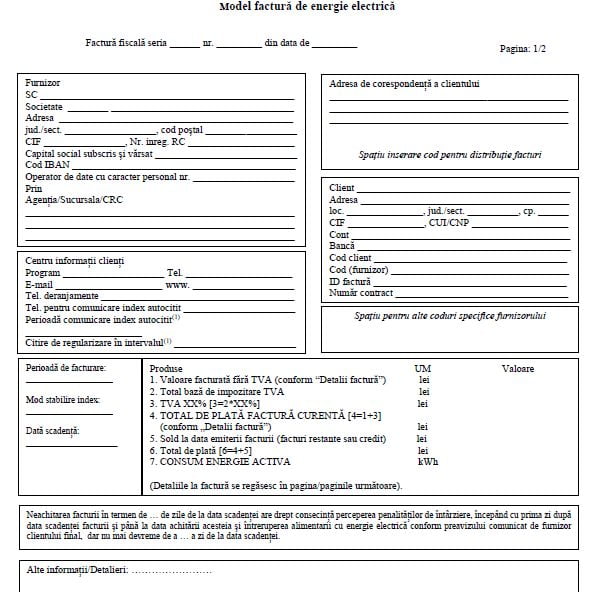 Noul model de factură de energie electrică are o primă pagină relativ simplă, în care sunt definite părţile, elementele de identificare pentru relaţia contractuală, cantitatea fizică consumată curent şi factura, cât plăteşte omul pe perioada facturată, având în spate detalii pe care oricine le poate utiliza în înţelegerea unor lucruri pe care forma simplificată nu le dă.