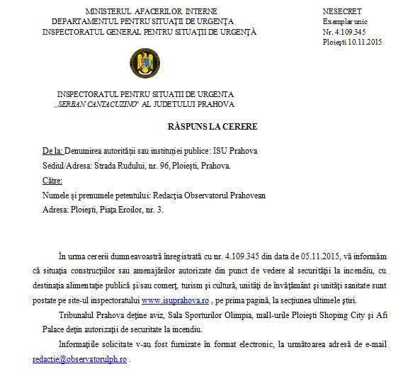 Vezi mai jos răspunsul ISU Prahova