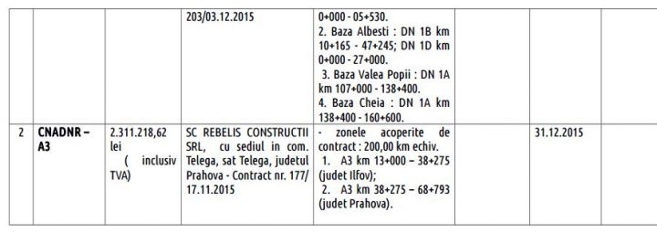 CNADNR a semnat cu firma Rebelis Construcții SRL din Telega două contracte în valoare totală de aproape 14 milioane de lei (echivalentul a 3 milioane de euro) pentru deszăpezirea drumurilor naționale din Prahova și tronsului A 3 București-Ploiești.