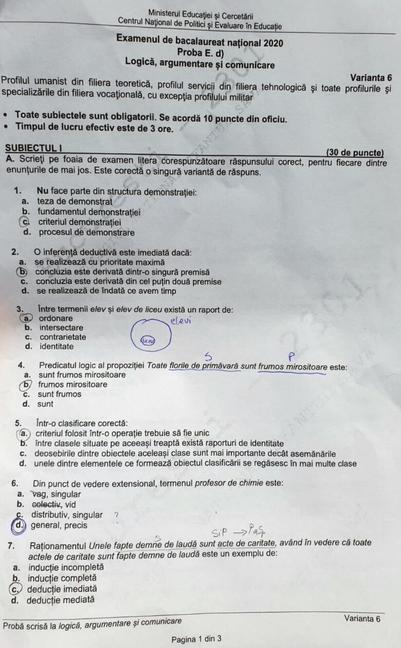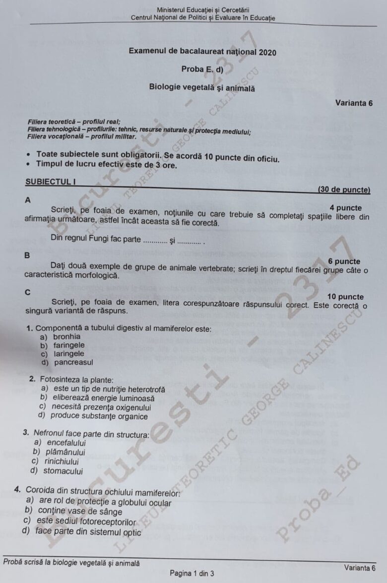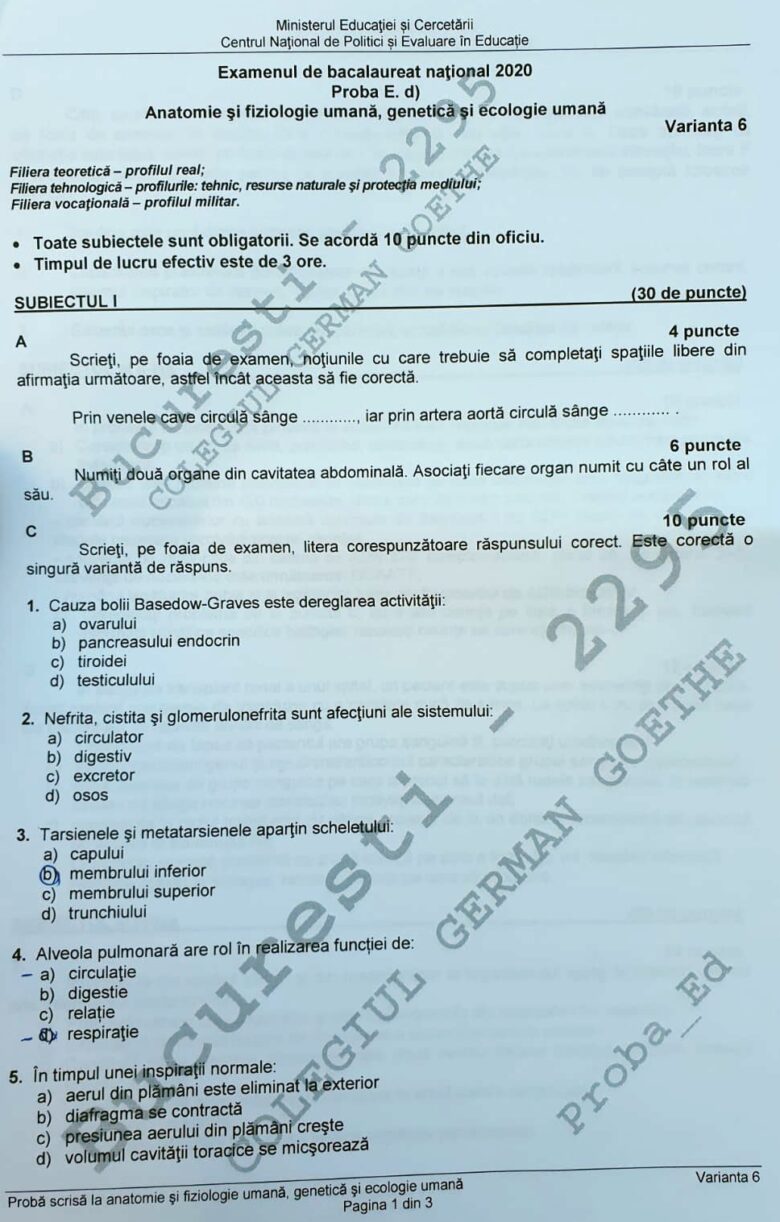 Bac 2020. Ce subiecte au picat la Biologie, Anatomie și Logică