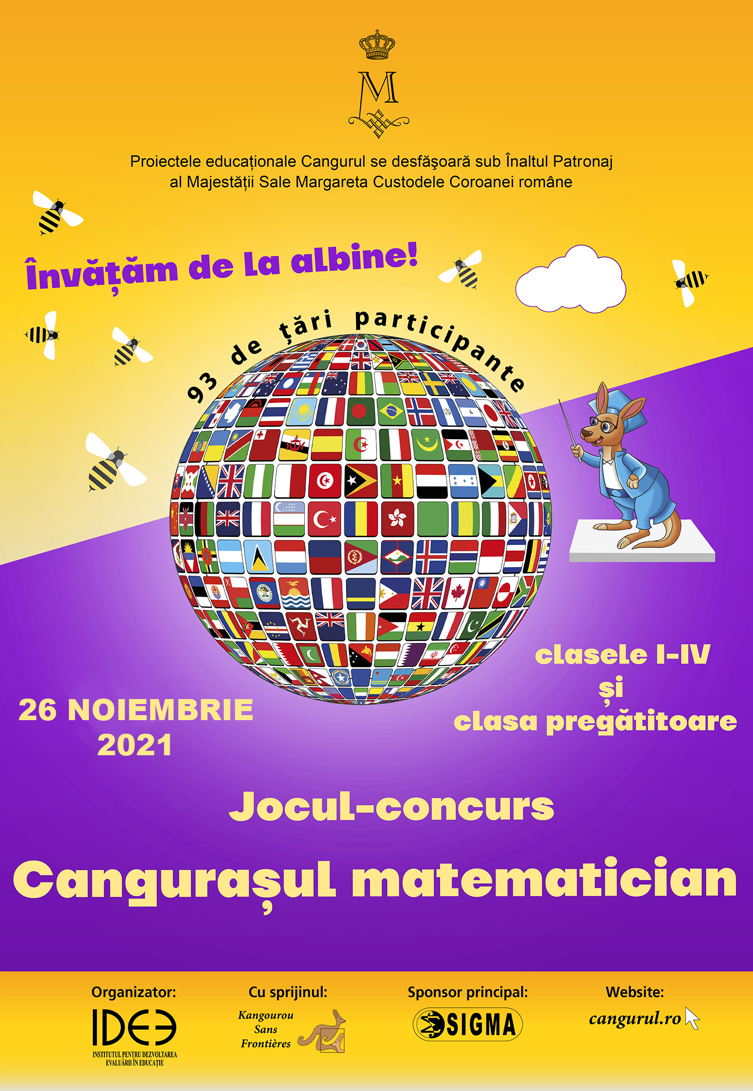 Asociația Institutul pentru Dezvoltarea Evaluării în Educație (Asociația IDEE) are plăcerea să vă anunțe că au început înscrierile la jocul-concurs internațional Cangurașul matematician care va avea loc pe 26 noiembrie. Testele de antrenament pot fi deja achiziționate de pe www.editurasigma.ro. Concursul se adresează elevilor din clasa pregătitoare și din clasele I-IV, și se află la poziția 143 în Anexa 5 din Lista competițiilor școlare internaționale, naționale și regionale în anul școlar 2019 – 2020 aprobată prin OMEN nr. 5092/30.08.2019. Observatorul Prahovean este partener media.