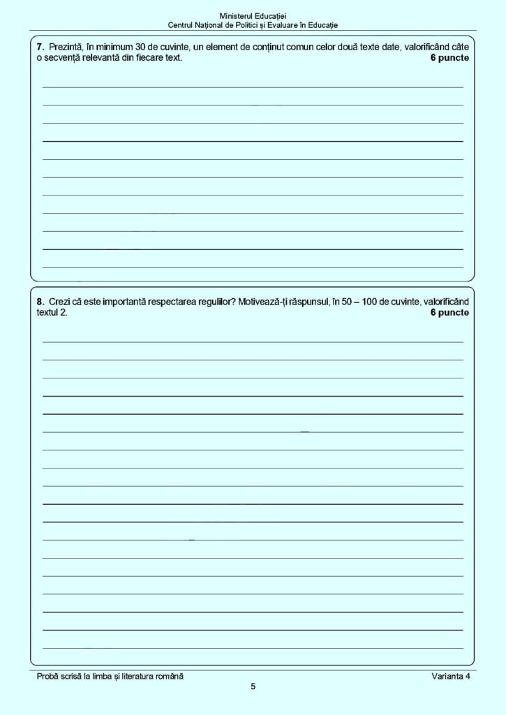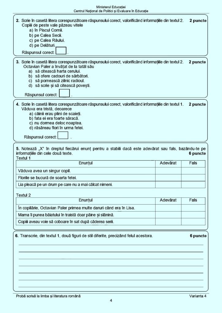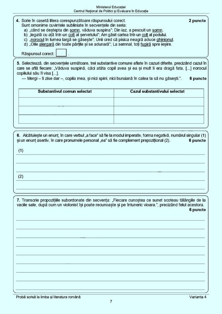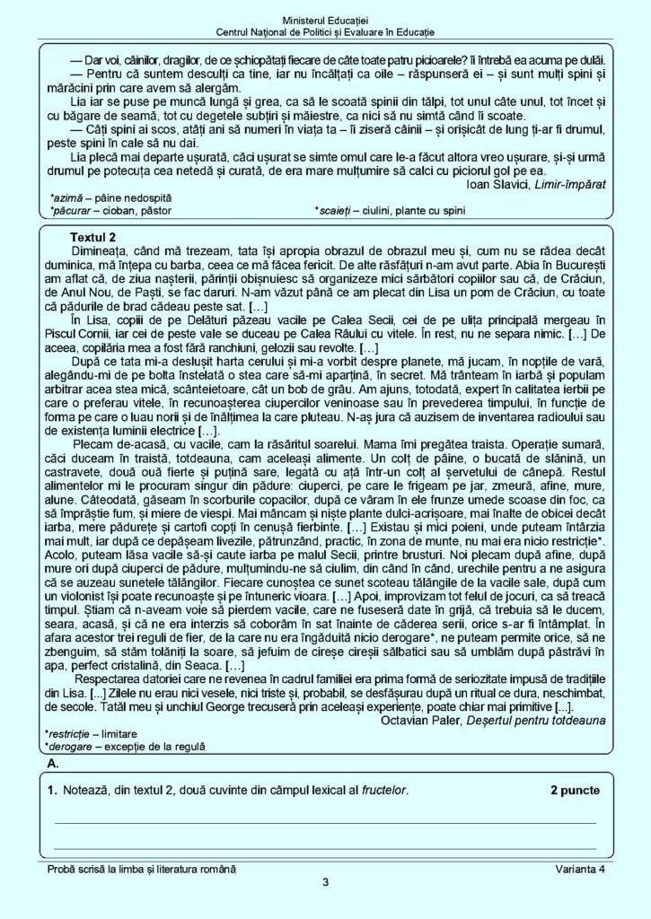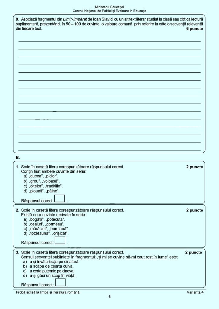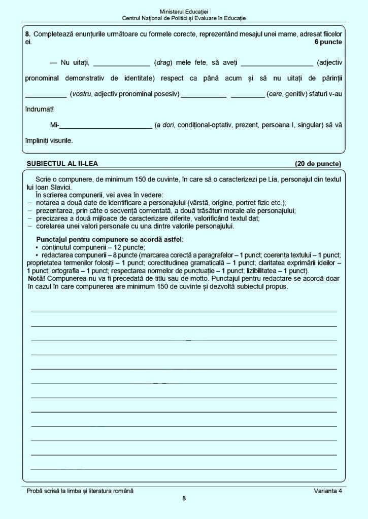 Publicăm mai jos subiectele primite, astăzi, de către elevi la proba de limba și literatura română:
