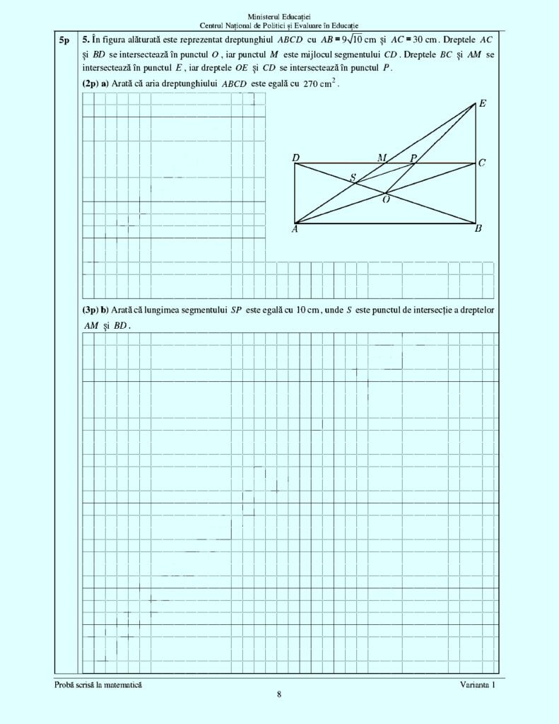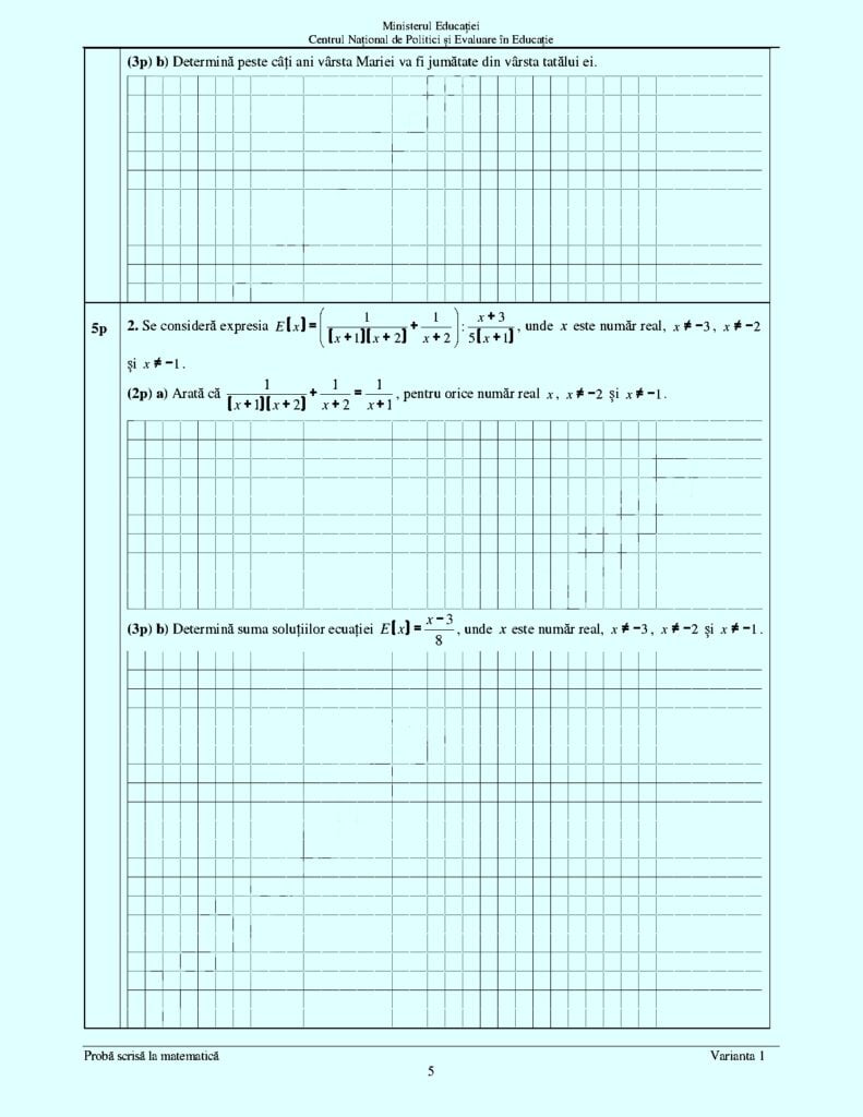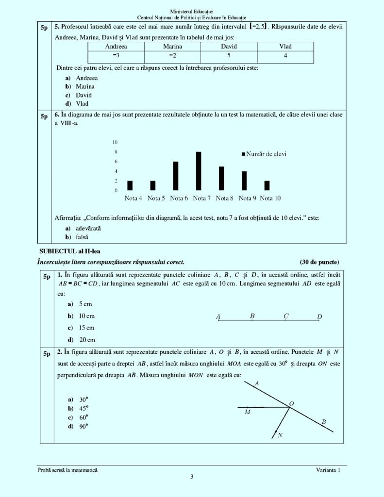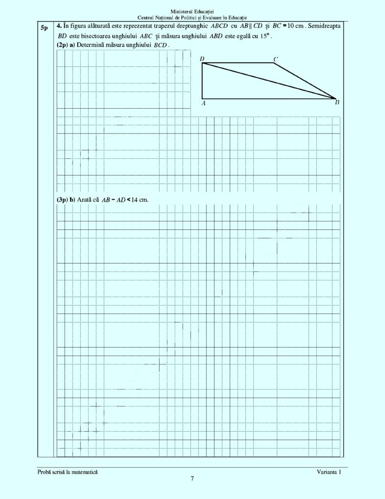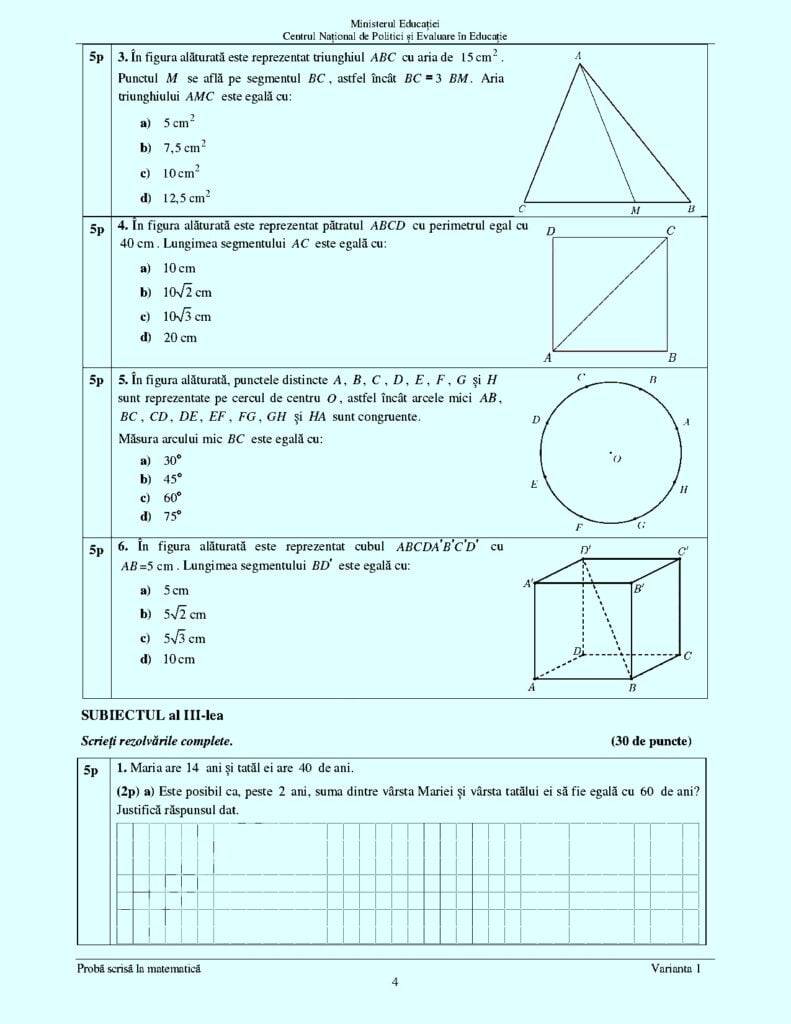 Publicăm subiectele care au picat la proba scrisă de matematică. Baremele de corectare vor fi anunțate la ora 15.00 de către Ministerul Educației.