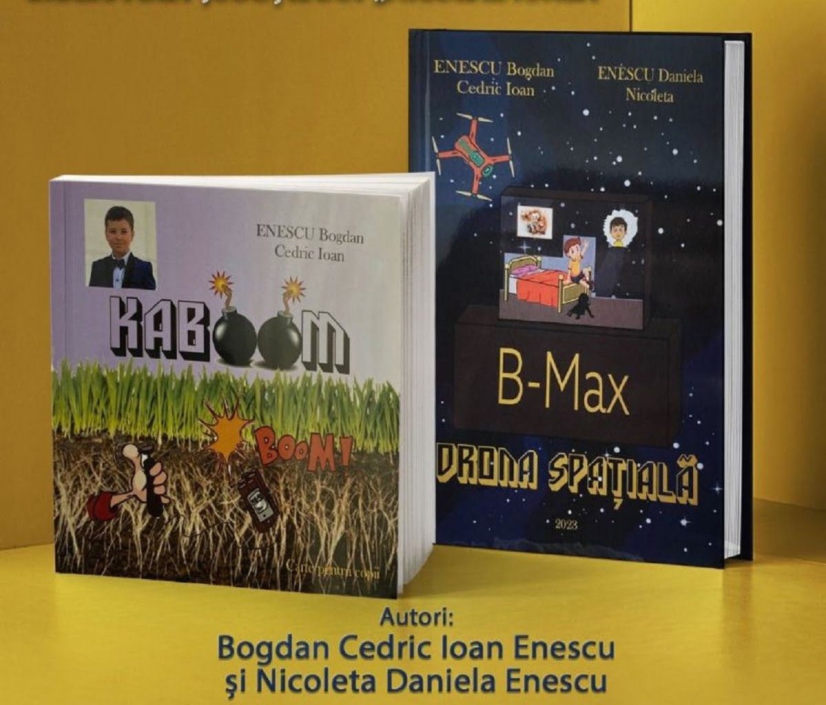 Zilele trecute, la sala de lectura “Nichita Stanescu” a Bibliotecii Județene “Nicolae Iorga” din Ploiești, a avut loc dubla lansare de carte a autorilor Bogdan Cedric Ioan Enescu și Daniela Nicoleta Enescu, (mamă- fiu). Bogdan, acum în vârstă de 10 ani, a avut încă de la 4 ani  ideea cărții KABOOM, carte pe care a finalizat-o la vârsta de 8 ani. KABOOM este povestea unui om sarac, care demonstrează că atunci când crezi în visul tău și te implici, când faci pași pe drumul pe care ți l-ai ales, reușești să ajungi în vârf.