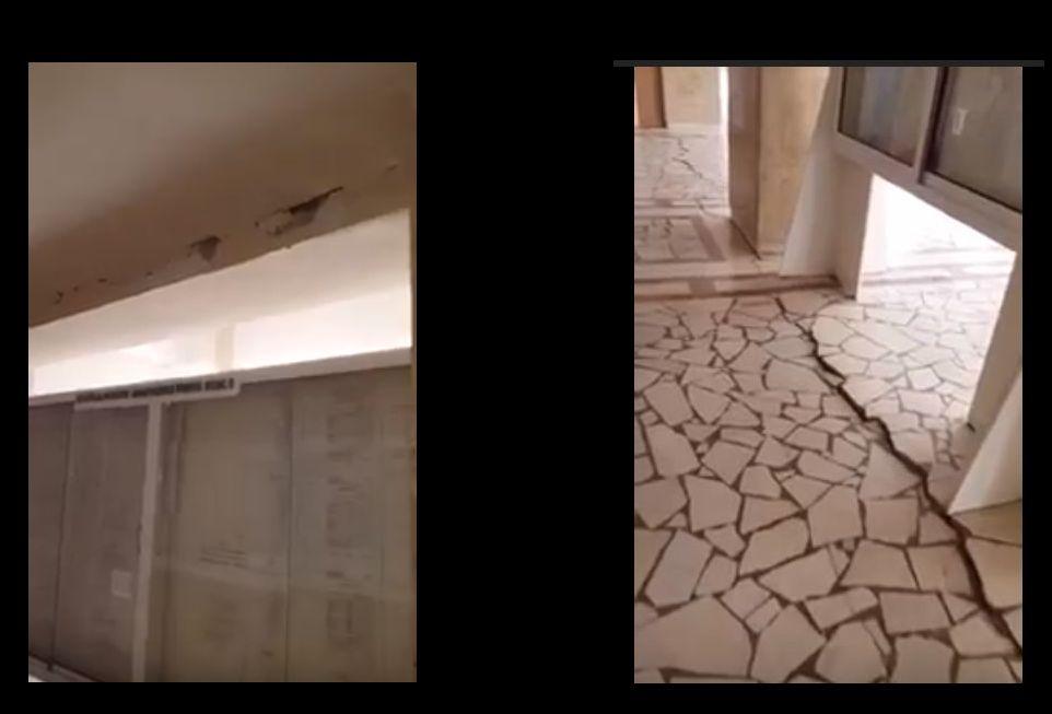 În imaginile pe care le puteți viziona mai jos se văd fisuri puternice atât în pardoseală, cât și la grinzile de susținere, ceea ce ar putea însemna că structura de rezistență a fost afectată de seismul de 5,8 grade de noaptea trecută.