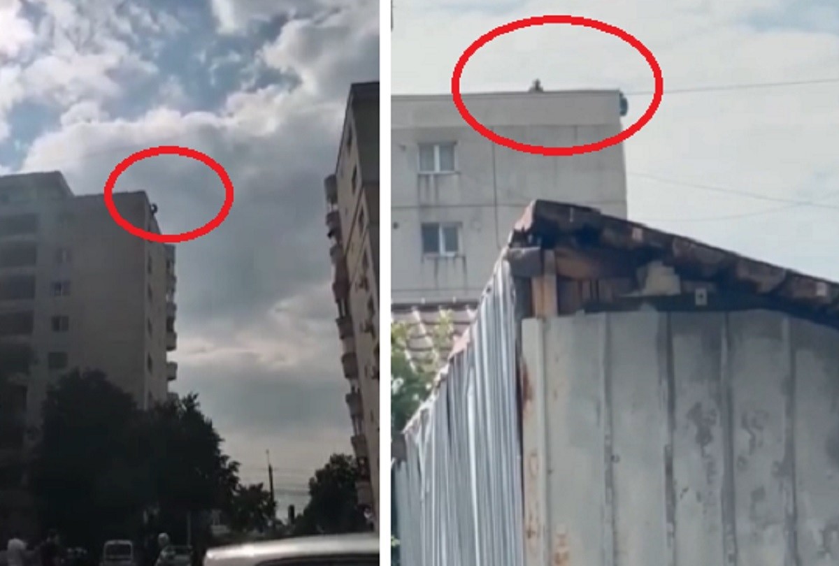 Mai mulți cititori ne-au trimis imagini de la fața locului cu momentul în care bărbatul se aruncă în gol.