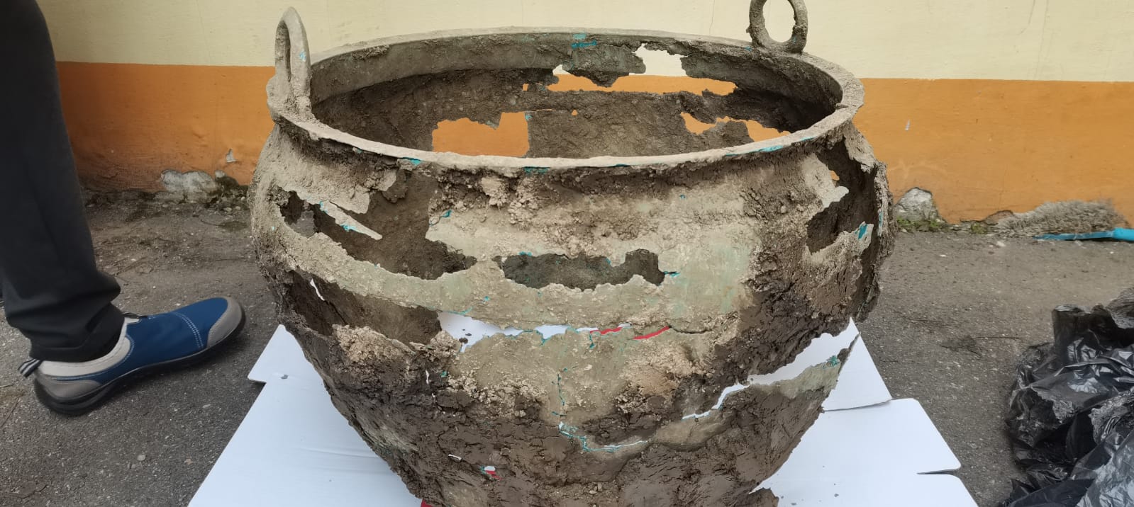 Oamenii au început săpăturile și au realizat că este vorba despre un ceaun de dimensiuni uriașe.