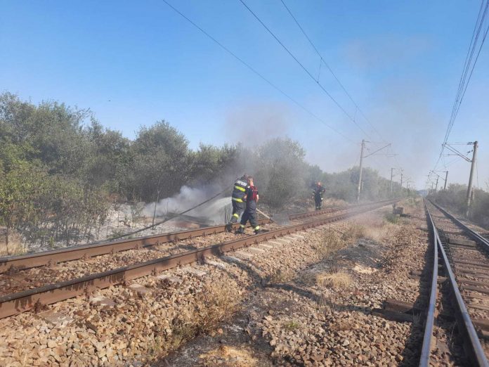 Un incendiu de vegetație a izbucnit luni după amiază în Prahova, la Inotești, în apropierea căii ferate care străbate localitate.