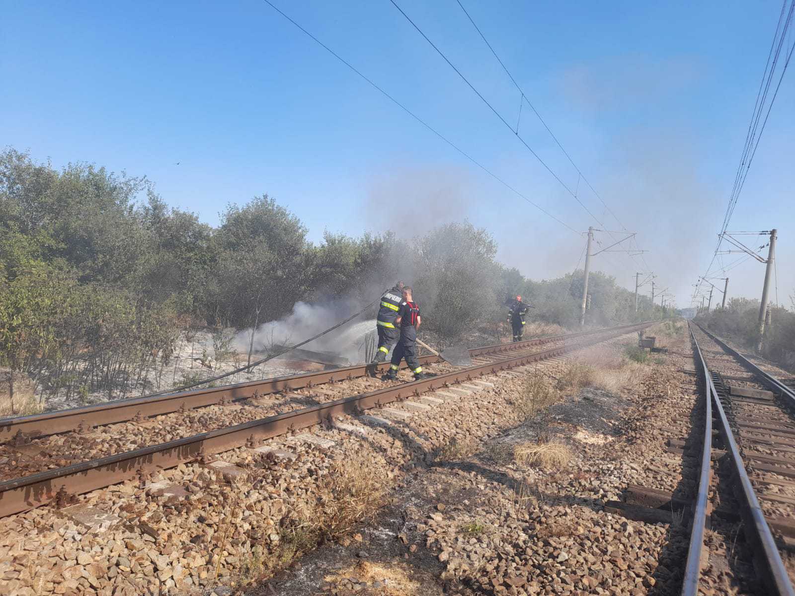UPDATE: Prahova: 20 de vagoane încărcate cu benzină în pericol din cauza unui incendiu de vegetație. Circulație feroviară oprită la Inotești