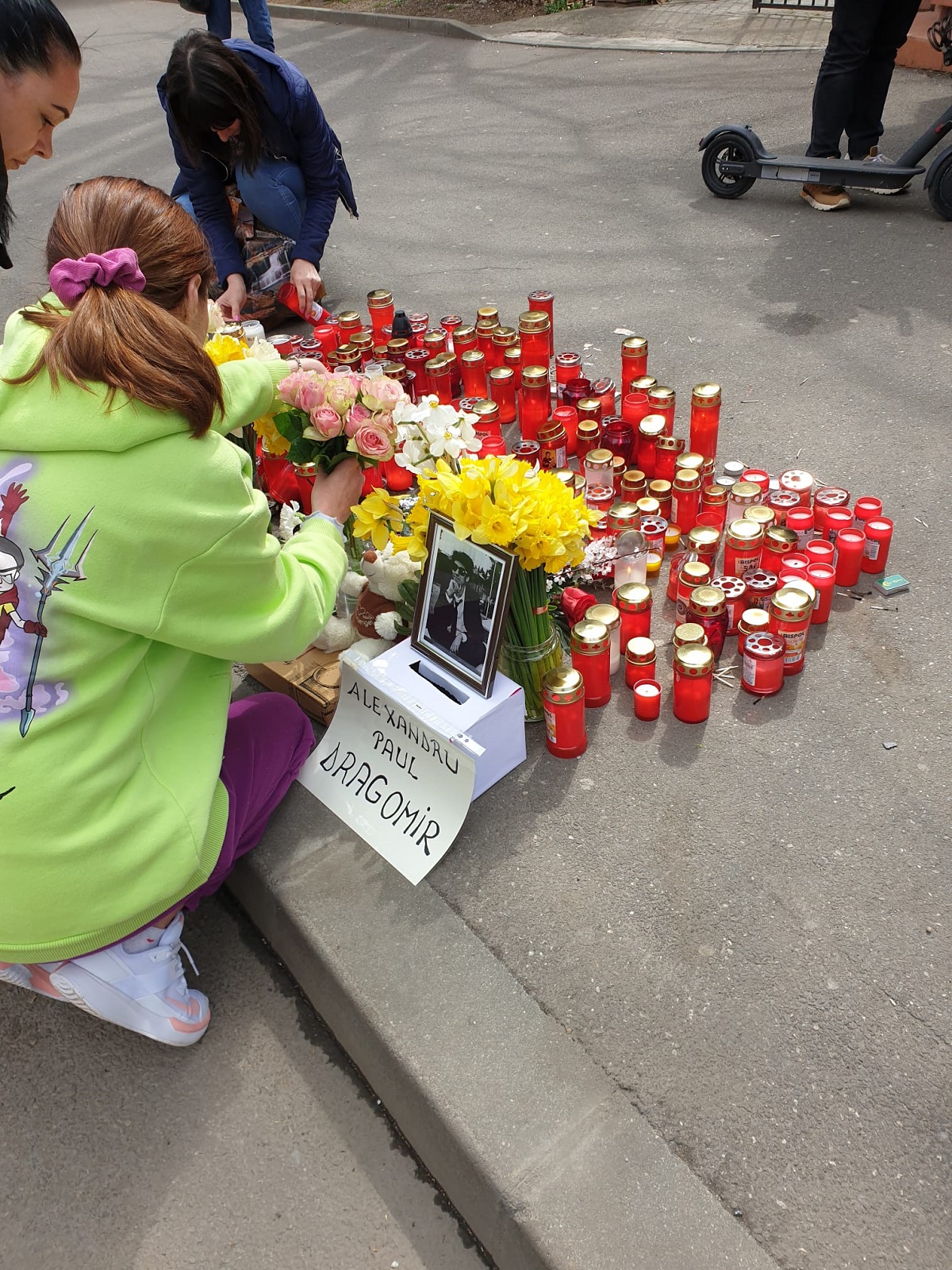 Altar de flori și lumânări în memoria lui Paul Alexandru Dragomir, adolescentul de doar 17 ani, ucis pe trecerea de pietoni, aseară, în Câmpina. Alexandru era elev în clasa a XI-a la Colegiul Național „Nicolae Grigorescu”. Se întorcea de la teatru și mai avea puțin până acasă. Viața i-a fost frântă într-o secundă de o șoferiță care, potrivit martorilor, circula cu peste100 km/ h pe artera principală a orașului.