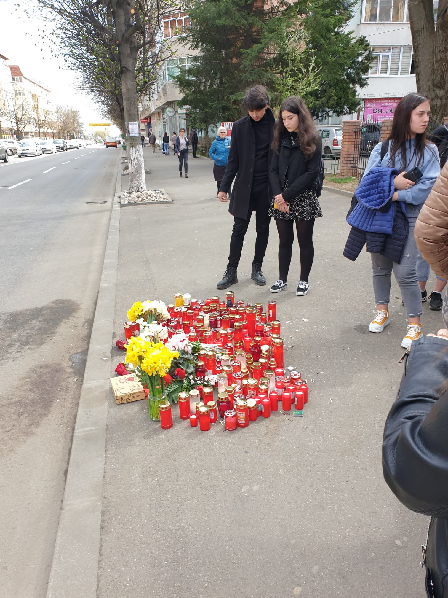 În semn de omagiu adus lui Alex, locul în care, aseară, s-a produs tragedia, a fost transformat într-un altar de flori și lumânări.
