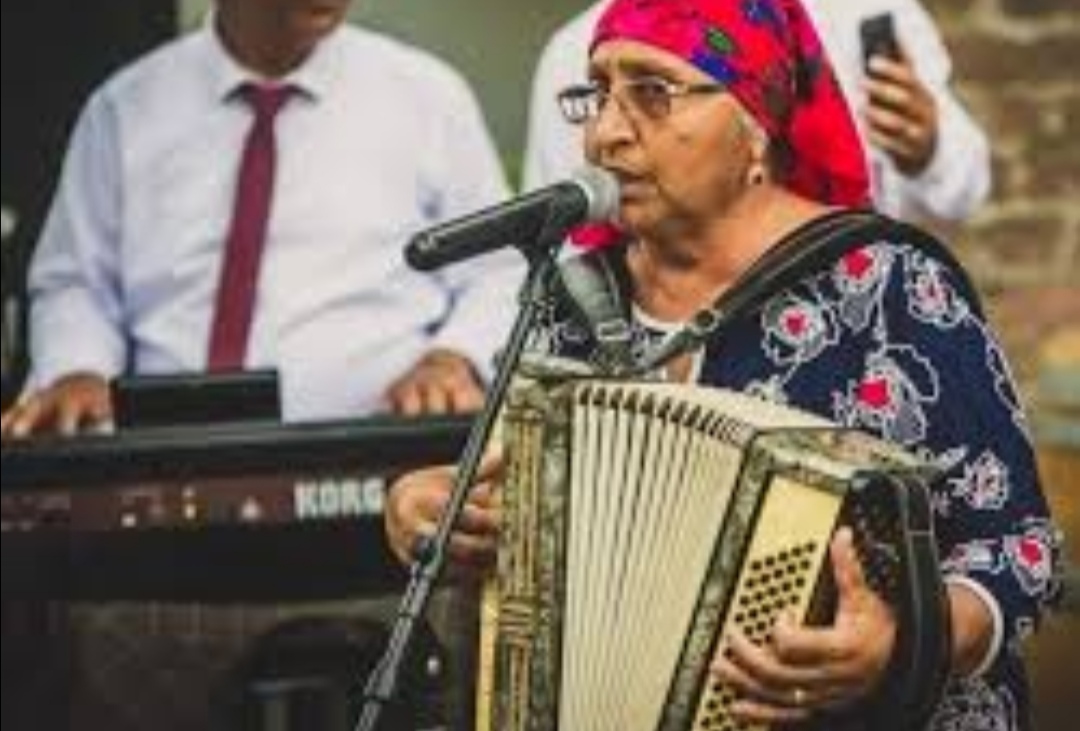 De fiecare dată când apare cu acordeonul, dă dovadă de autenticitate. Niciodată nu îi lipsește basmaua colorată, semn că e mândră de ale sale origini.