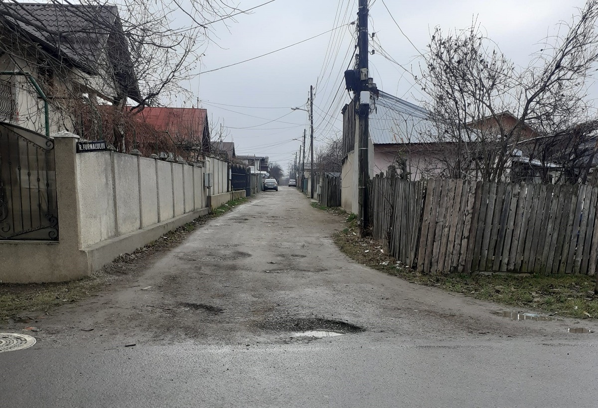 Strada Furnalului din Ploiești, oraș european. Condiții mai grele decât la țară. Familiile care au domiciliul în această zonă spun că străzile sunt pline de cratere, iar praful și noroiul sunt ceva la ordinea zilei.