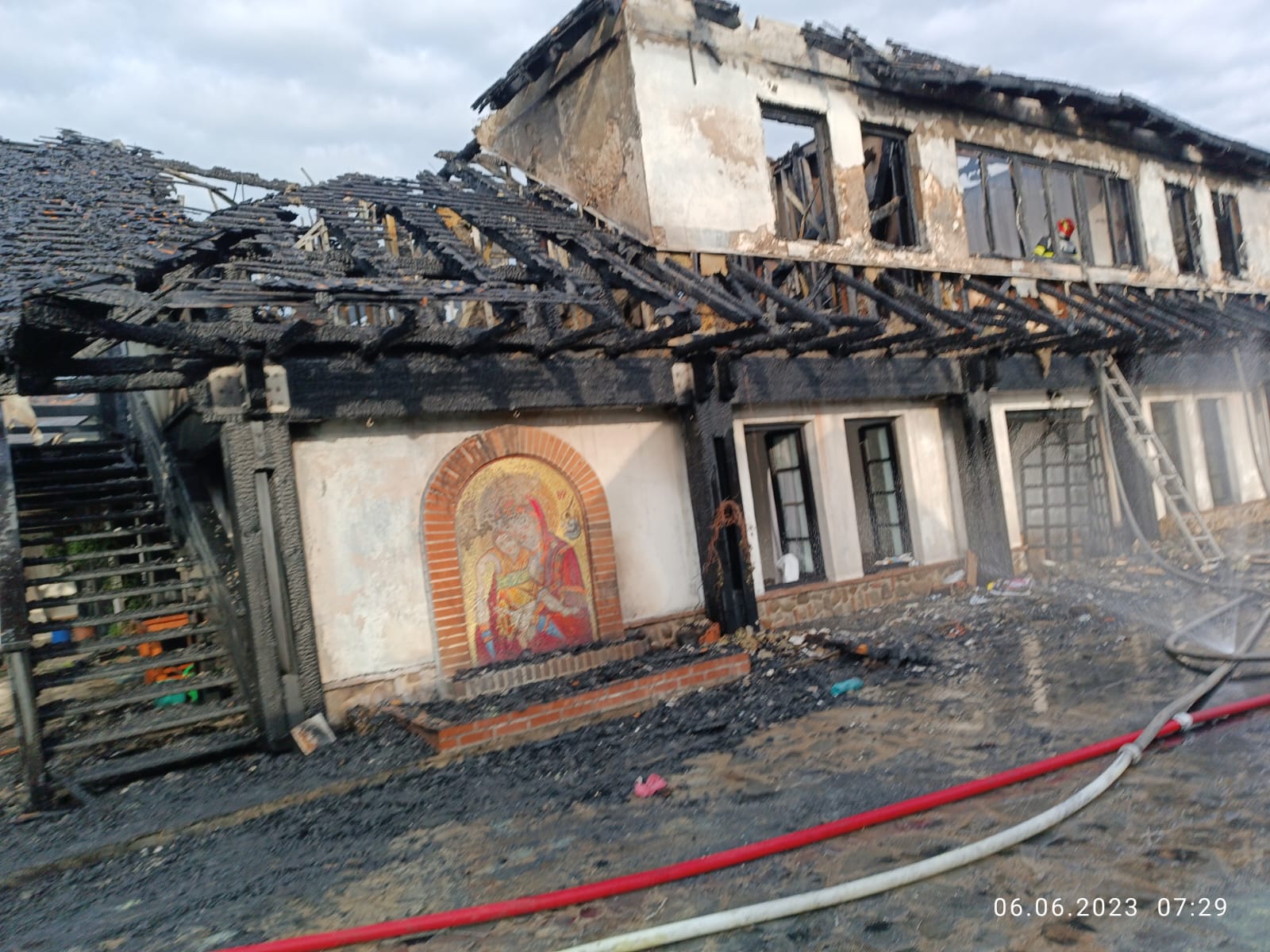 „Flăcările au cuprins acoperișul și etajul I ale casei parohiale, fiind afectate și chiliile din apropiere. Incendiul a fost localizat la ora 04.38.