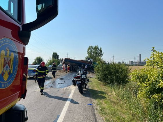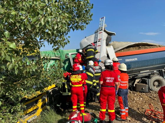 Din primele informații, în impact au fost implicate două camioane încărcate cu agregate minerale (pietriș).