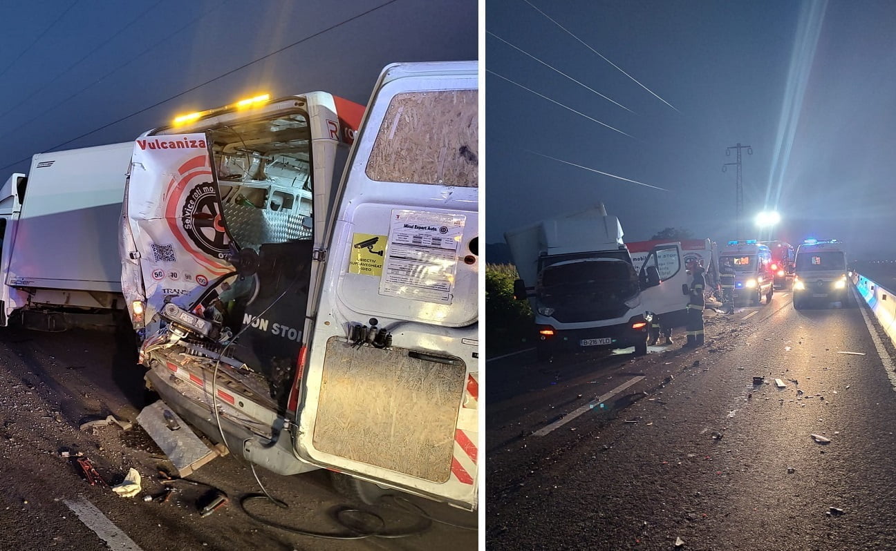 În impact au fost implicate trei autoutilitare, iar trei persoane au fost transportate la spital pentru îngrijiri medicale de specialitate.