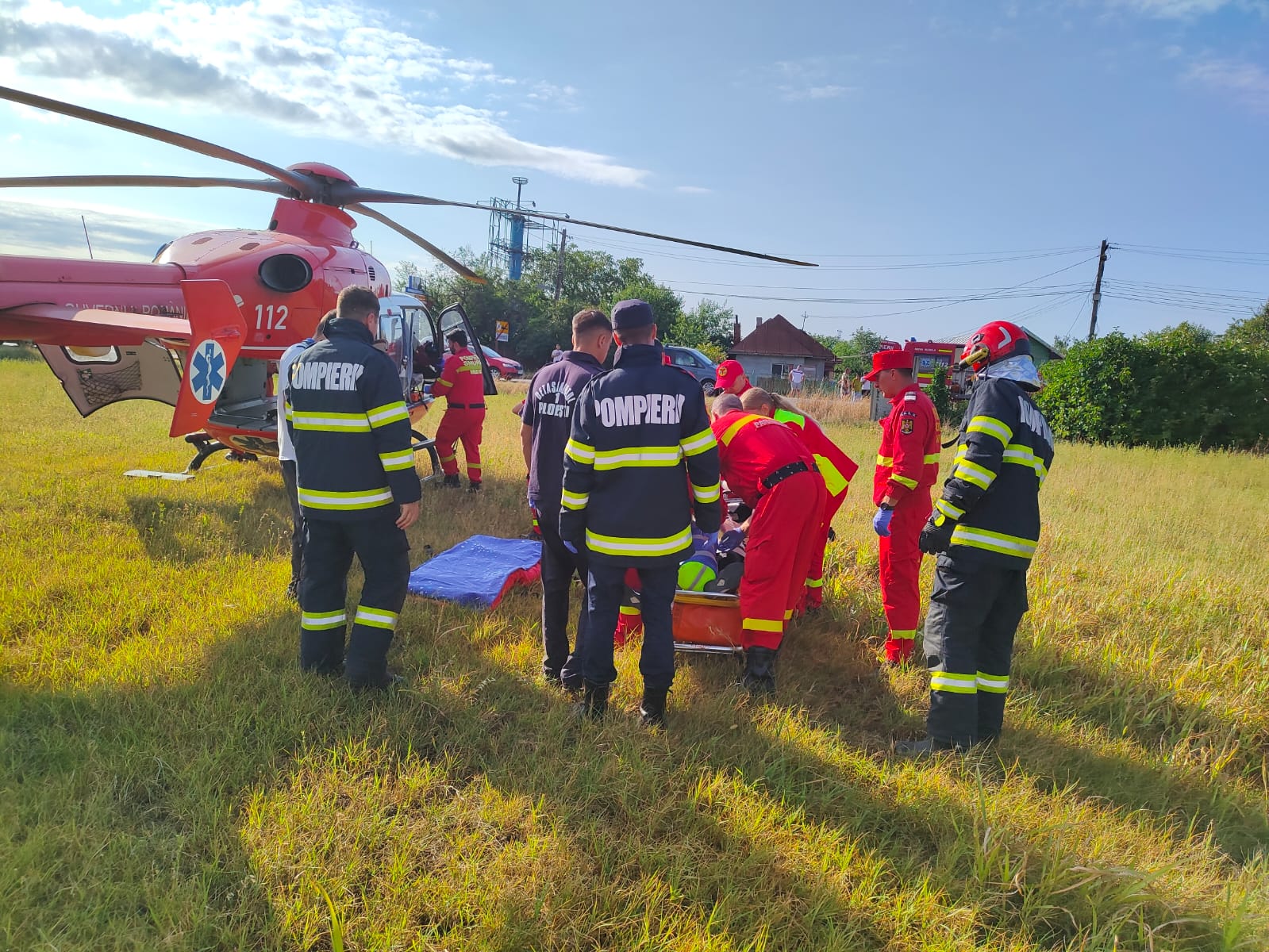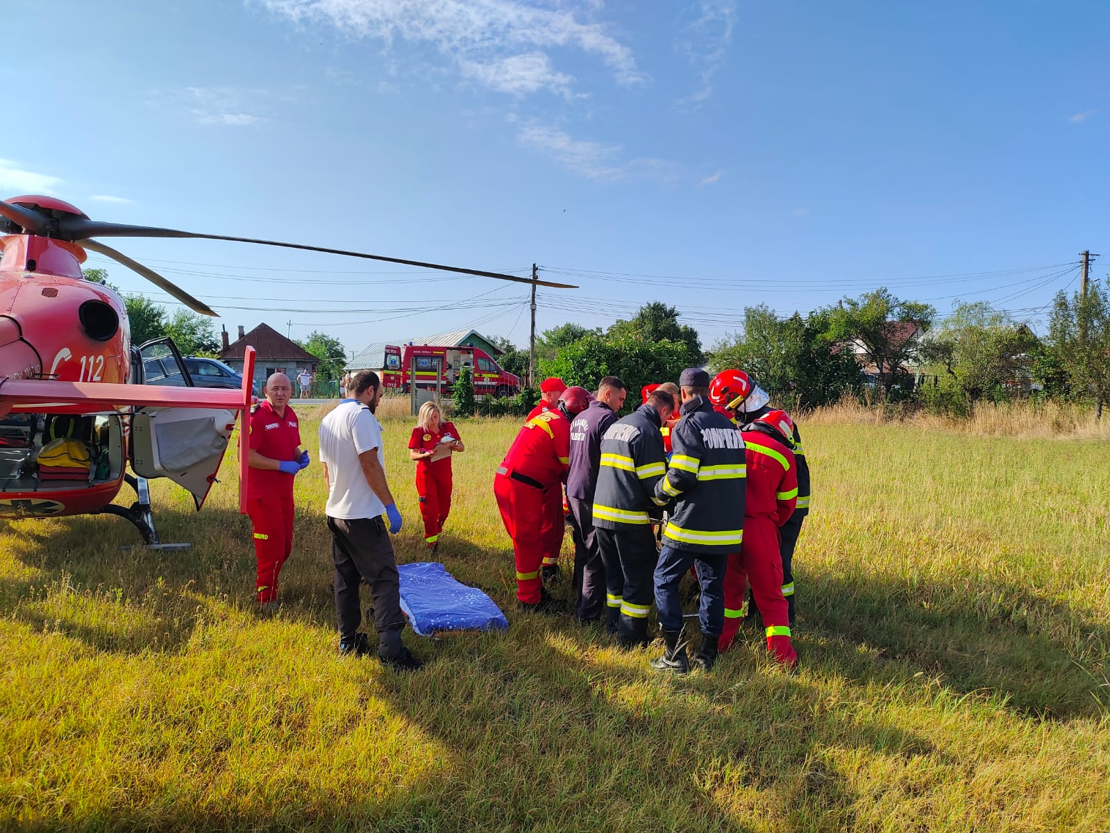 La fața locului a fost solicitată intervenția unui elicopter SMURD.