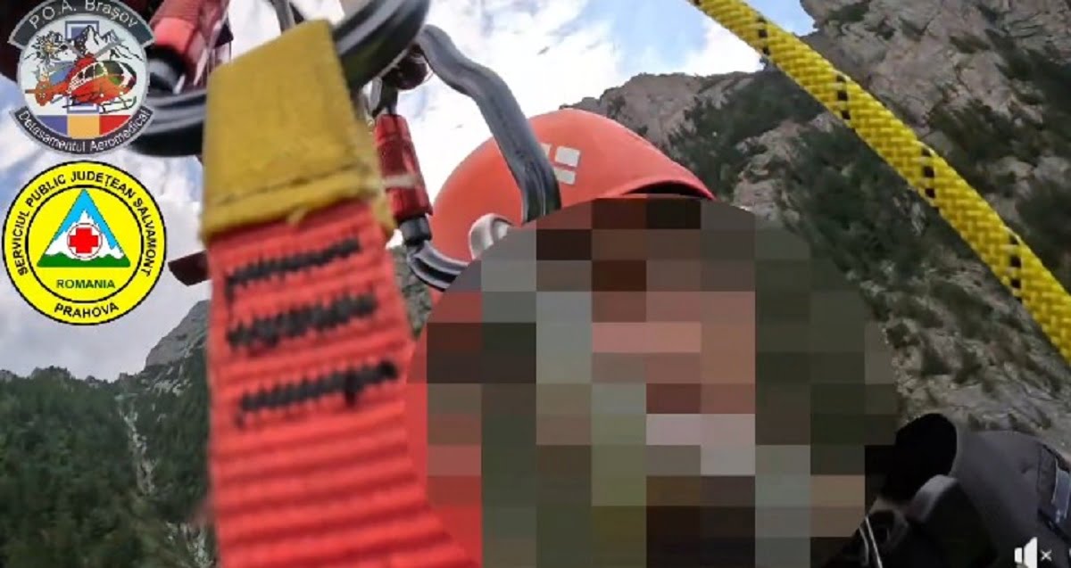 Parte din extracția aero de ieri, 14 iulie, a celor trei turiști blocați pe Valea lui Zangur, realizată de către echipajul elicopterului 336 de la POA Brașov, și cei doi salvatori montani de la Salvamont Prahova s-a soldat cu succes, din fericire.